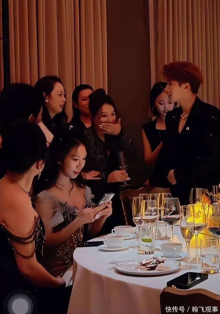 他早已不见舞台上霸气外露的模样,整晚围绕投资方和高层人士打转,端酒递水、察言观色,举止间竟透出几分服务人员的卑微感。