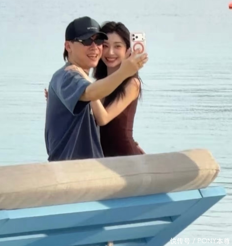 两人在海边拥吻,胡彦斌手拿粉色手机,一边和易梦玲接吻,一边拿着手机拍照,网友惊呼,这不会是AI吧!