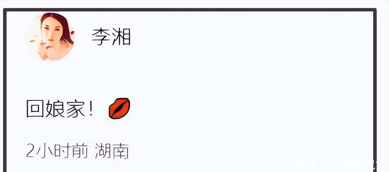 但这还不够。11月9号,大招来了。李湘连发两条动态,先是抱个娃娃露半张脸,配文“回娘家(湖南)了”。